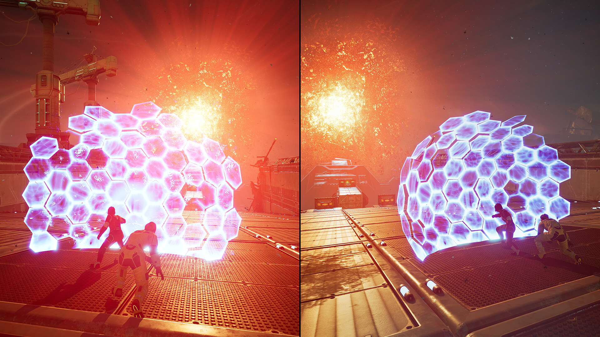 تقدم لعبة Split Fiction تجربة جديدة ومتميزة من خلال الاعتماد الكامل على اللعب التعاوني عبر شاشة مقسمة، وهو أسلوب سبق وأن اعتمده استوديو Hazelight بنجاح في لعبته السابقة It Takes Two. لكن في هذه اللعبة، يقدم المطورون إضافة كبيرة من خلال دمج قصتين مختلفتين تمامًا في نوعيهما؛ قصة خيال علمي تحكيها ميو، وقصة فانتازيا تحكيها زوي. هذا الدمج لا يضيف فقط تنوعًا بصريًا وسرديًا، بل يخلق أيضًا تجربة لعب متعددة الأبعاد حيث تختلف طبيعة التحديات وآليات اللعب بين كل قصة وأخرى.
